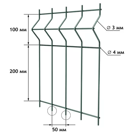 Геометрические параметры 3D-панелей также стандартизированы и могут варьироваться в зависимости от производителя и выбранной серии. Ширина стандартных секций обычно составляет 2,5 м или 3,0 м, что позволяет легко монтировать заборы большой протяженности. Высота панелей имеет очень широкий диапазон, начиная от минимальных 0,63 м и заканчивая высокими секциями до 3,33 м и даже 6 м. Число ребер жесткости напрямую зависит от высоты забора: чем он выше, тем больше таких ребер требуется для обеспечения необходимой жесткости и устойчивости к ветровым нагрузкам. Например, для низких панелей (0,63–1,43 м) может быть достаточно 2 ребер, тогда как для высоких секций (2,03+2,03 м) их число достигает 8. Размер ячейки, как правило, прямоугольный, наиболее распространенным вариантом является 50×200 мм или 55×200 мм, хотя встречаются и другие размеры, такие как 200×55 мм. Опорные столбы, к которым крепятся панели, изготавливаются из профильной трубы прямоугольного или круглого сечения, например, 60×60 мм или 80×80 мм, с толщиной стенки от 1,2 мм до 3,0 мм. Весь комплект для монтажа, помимо самих панелей и столбов, включает антивандальные крепежные элементы (П-, Г-, У-образные скобы), заглушки для торцов столбов и горизонтальные укрепляющие прутья.